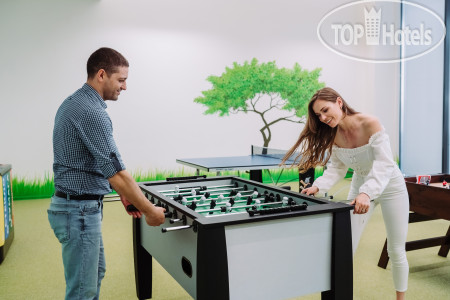 Отдыхали в отеле впервые. Самолет сильно задержали и мы приехали в отель только в 19 часов 31 декабря. Все планы немного нарушились. Но мы не унывали. На ресепшен девчата быстро нас разместили по номерам, вручив на каждого гостя по новогоднему пряничку в виде елочки. Пряники, кстати, на вкус оказались очень вкусными. Нас было 12 человек, 8 взрослых и 4 ребенка. Бронировали 4 номера - 2 четырехместных, студию и двухкомнатный люкс. Номера очень понравились. Все. Номер люкс, конечно, выше всех похвал! Мы очень много отелей посещали, нередко бронируем номера люкс, есть с чем сравнить. Этот номер - супер! Выше всех похвал! Есть все, как дома. Во всех номерах панорамные окна и на подоконнике лежат подушки и лежаки, чтобы отдыхать на окне. Это так удобно... Виды из окон разные, кому как достанется. Но везде интересно смотреть. Номера очень чистые, вся мебель хорошая, не старая, все выдержано в одном современном стиле. Очень приятно. Белье белоснежное. Отдыхали всего двое суток, в том числе Новогоднюю ночь, все осмотреть физически не успевали. Поэтому еще вернемся обязательно. Уж очень нам у вас понравилось. Спасибо огромное!