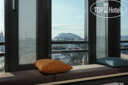 По расположению в городе: близко к ЖД вокзалу. В пешей доступности (после того как убрали заборы) к Олимпийским объектам. Кафе приличных рядом нет.